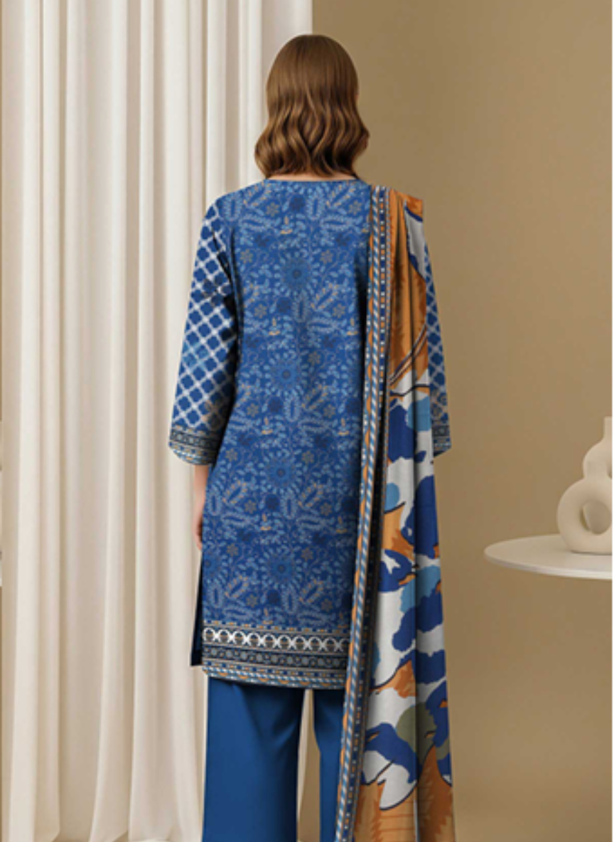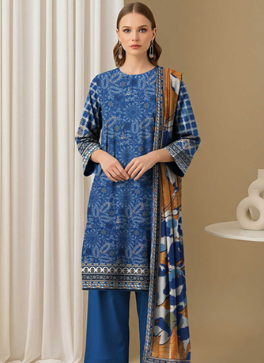 A stunning blend of elegance and comfort, this 3-piece linen suit features rich baroque patterns in green and blue tones. Perfect for graceful winter wear with a luxurious touch.