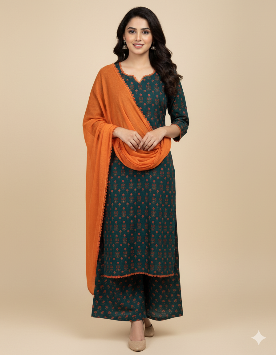 Make a lasting impression with the Zene Luxe 3-Piece Suit – where tradition meets sophistication. This beautifully coordinated ensemble includes a gracefully tailored kurta, a matching trouser, and a delicately designed dupatta. Perfect for festive occasions or formal gatherings, each piece reflects Zene’s commitment to timeless style and exceptional comfort.