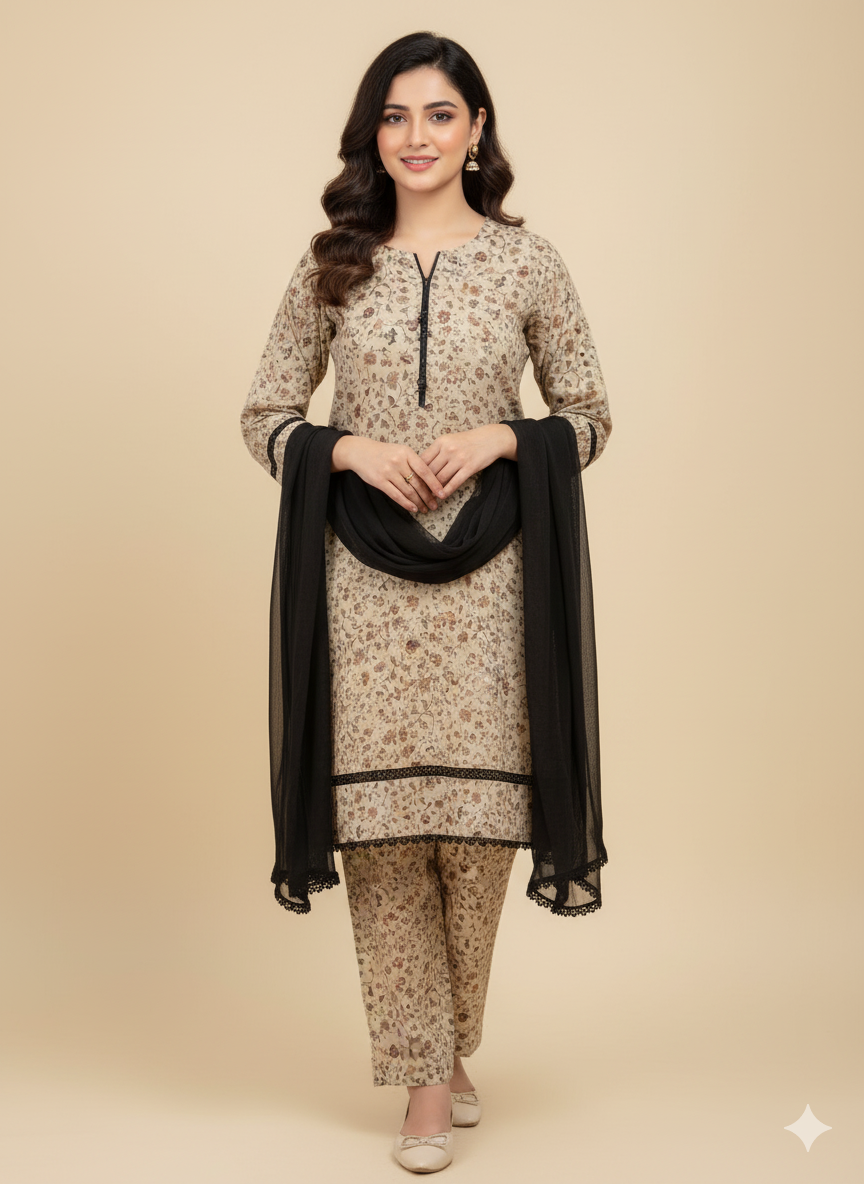 Make a lasting impression with the Zene Luxe 3-Piece Suit – where tradition meets sophistication. This beautifully coordinated ensemble includes a gracefully tailored kurta, a matching trouser, and a delicately designed dupatta. Perfect for festive occasions or formal gatherings, each piece reflects Zene’s commitment to timeless style and exceptional comfort.